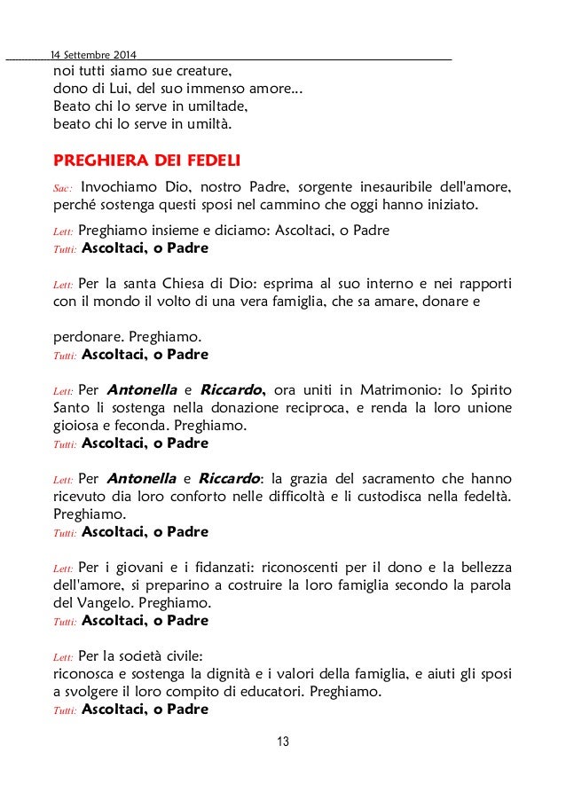 La preghiera dei fedeli lemienozzeit. Banchetti di nozze, abiti da sposa, organizzazione matrimonio, partecipazioni nozze, matrimonio civile, consigli. Cinquantesimo di matrimonio di sante e maria grazia. Dio creatore e salvatore, noi ci siamo uniti. Divorzio figli di genitori separati ecco le storie dei.